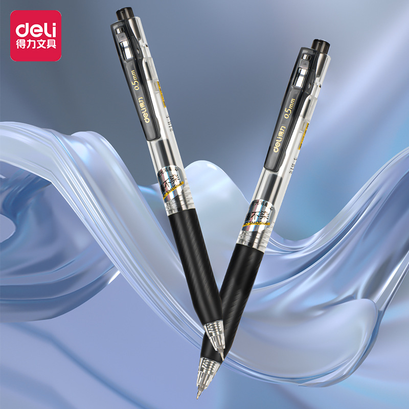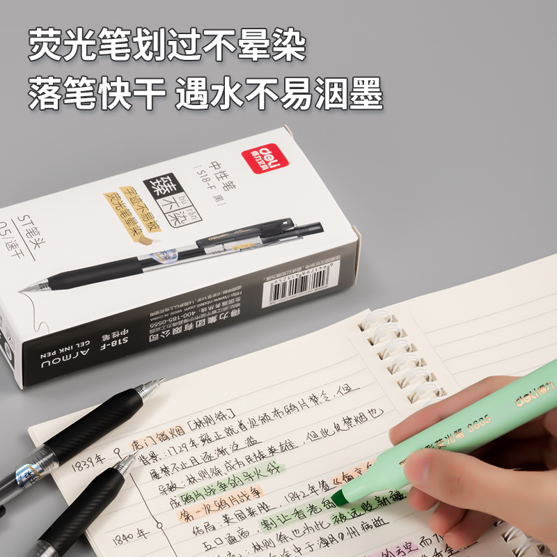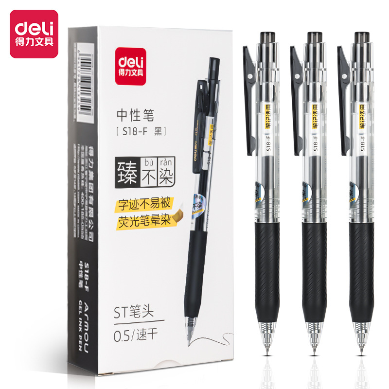 得力文具S18-F抗晕染按动中性笔学生书写ST笔头速干水笔签字笔