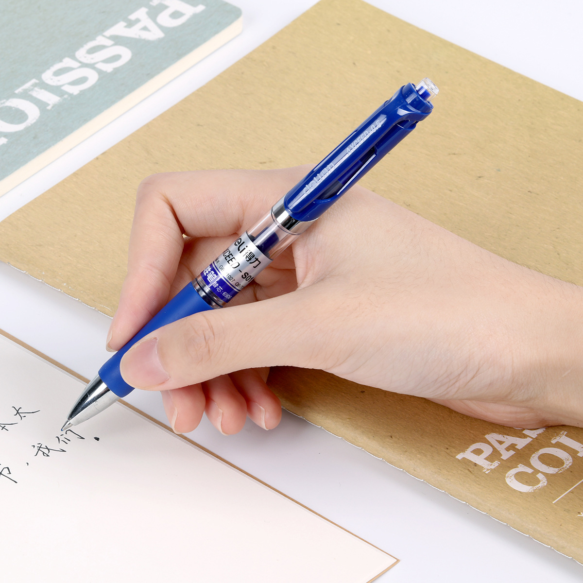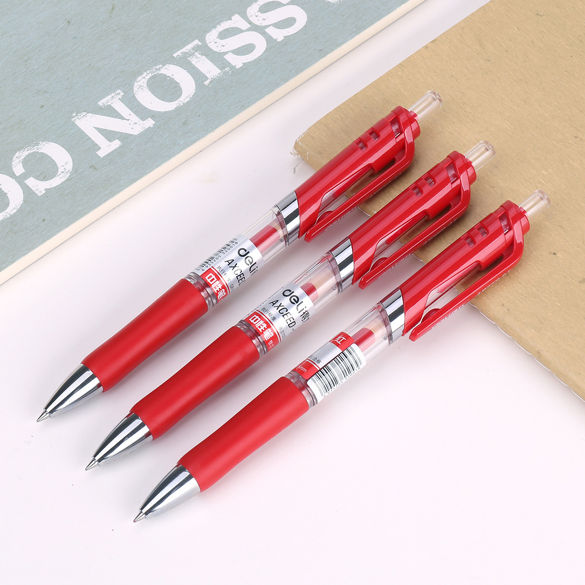 得力文具s01按动中性笔0.5mm黑色水性笔签字笔办公商务学生笔12支