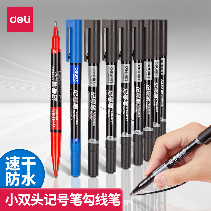 得力6823双头记号笔勾线笔批发黑色美术专用儿童幼儿园油性大头笔