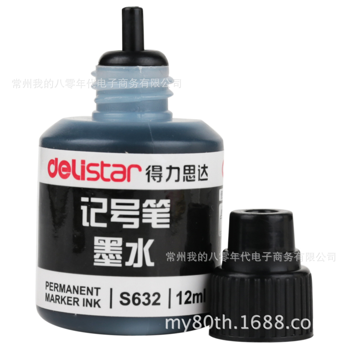 得力S632墨水可加墨记号笔墨水油性墨水S553配套红黑蓝记号笔墨水
