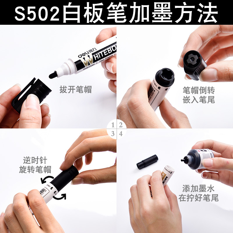 得力文具白板笔大容量可擦儿童可加墨黑板笔墨水写字板笔套装批发