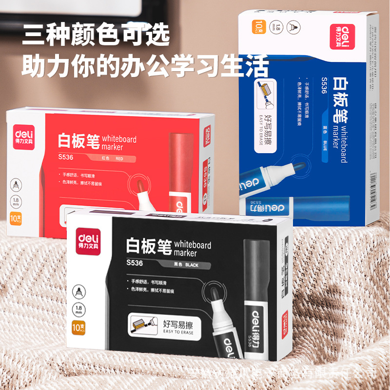 得力S536白板笔可擦粗头大容量易写易擦黑板笔办公用品教师用批发