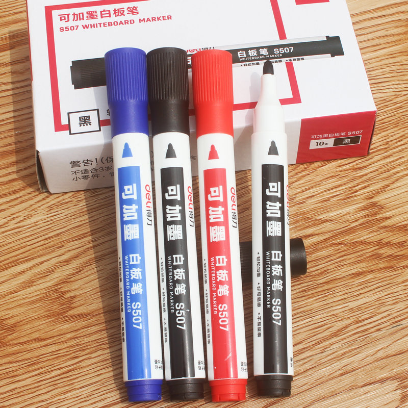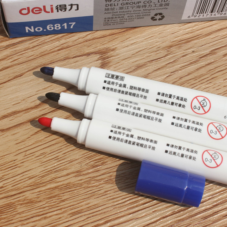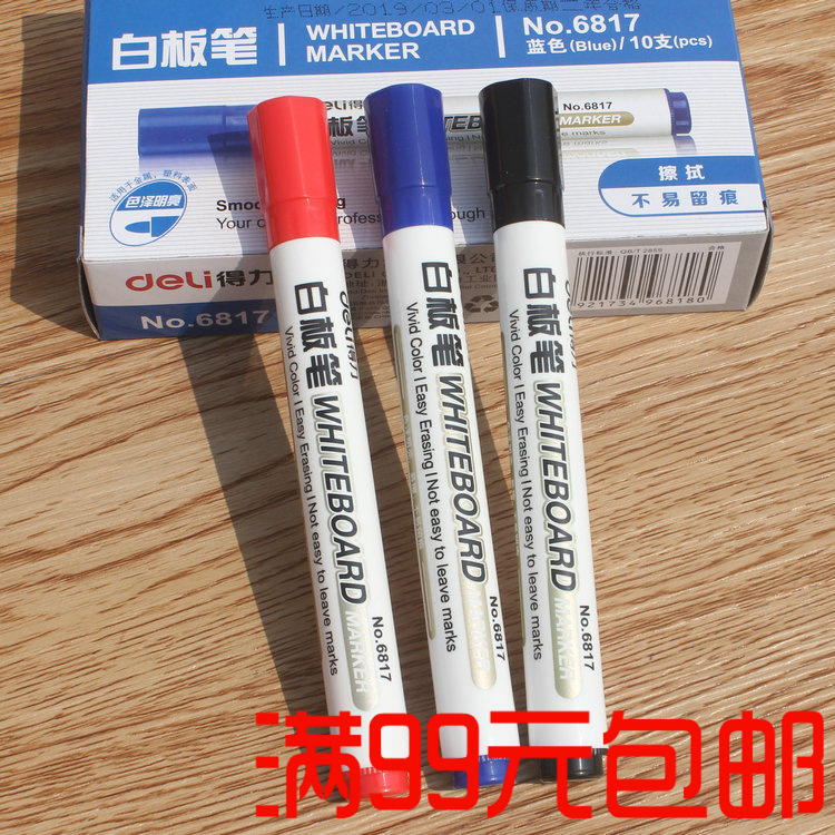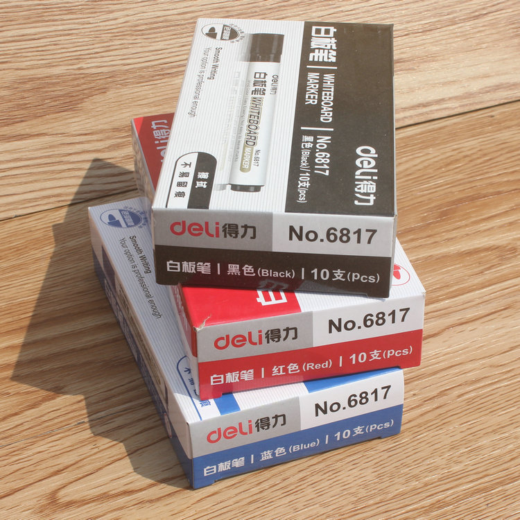 得力6817白板笔黑色水性可擦拭三色彩色红蓝板黑办公用品文具批发