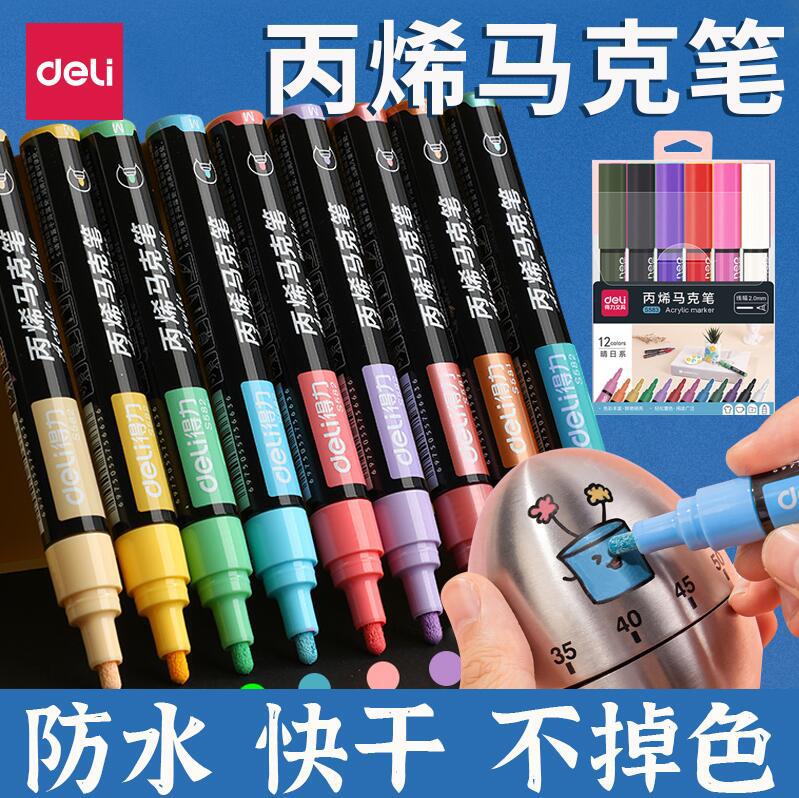 得力丙烯马克笔套装防水油性涂鸦绘画丙烯颜料手绘DIY粗头记号笔