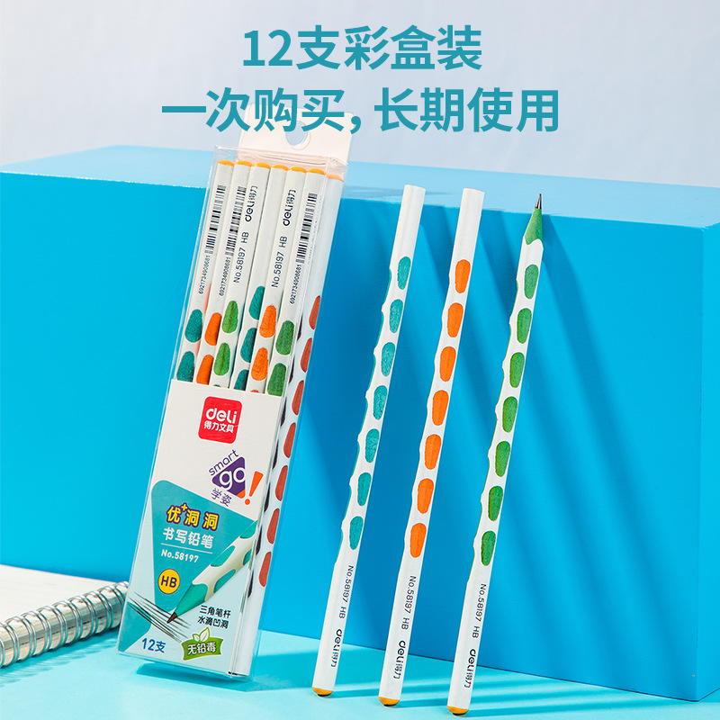 得力58797洞洞铅笔矫正握姿小学生铅笔HB铅笔三角杆学生用铅笔