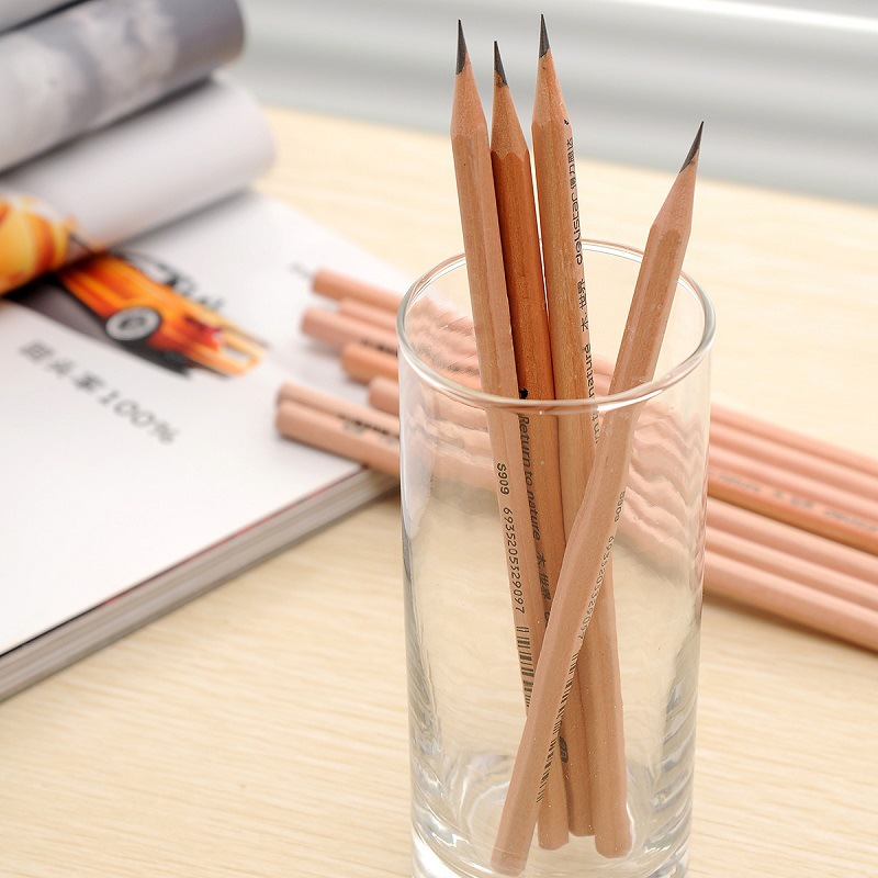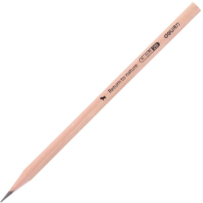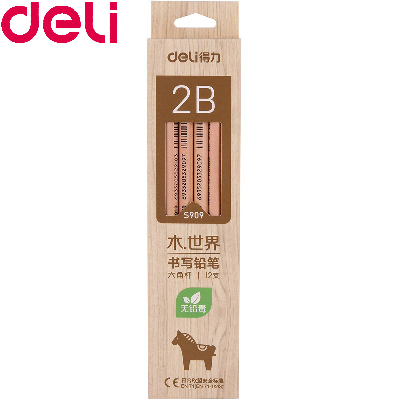 得力S909木世界原木铅笔 2B盒装 六角杆 原木安全铅笔 12支装 补货中