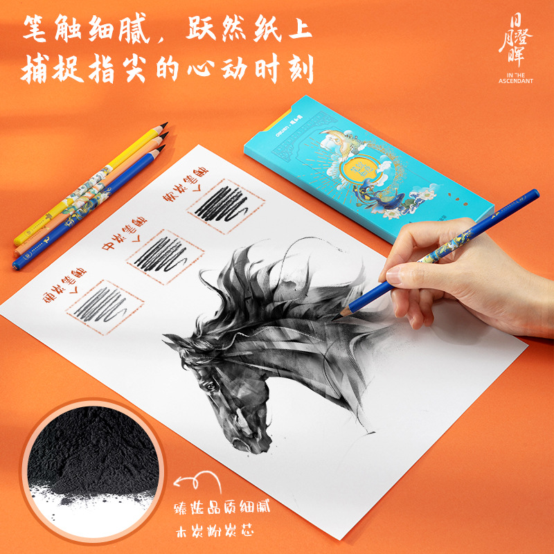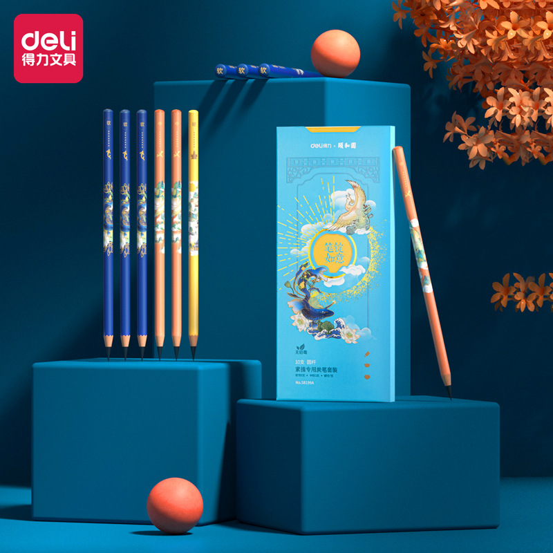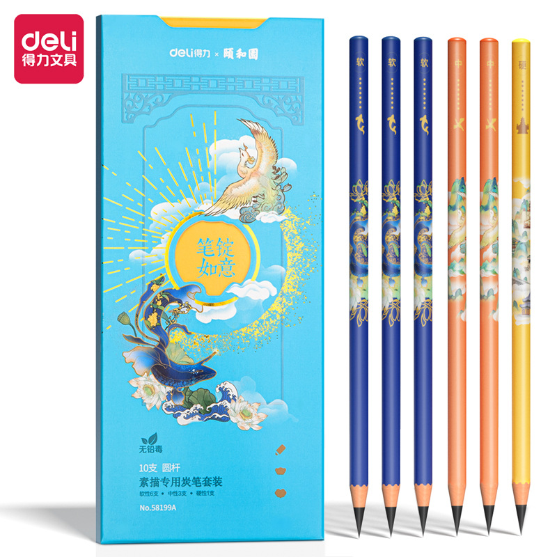 得力58199A颐和园炭笔(套装)(混)(10支/盒)绘画笔素描套装