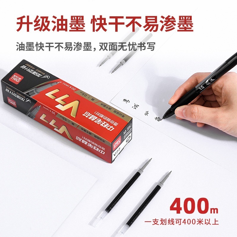 得力文具V77按动中性笔笔芯0.5mm考试专用针管速干顺滑黑色笔替芯