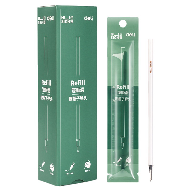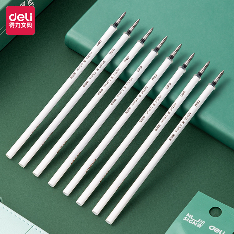 得力中性笔替芯0.5mm子弹头拔帽签字笔笔芯NS753 学生水笔芯批发