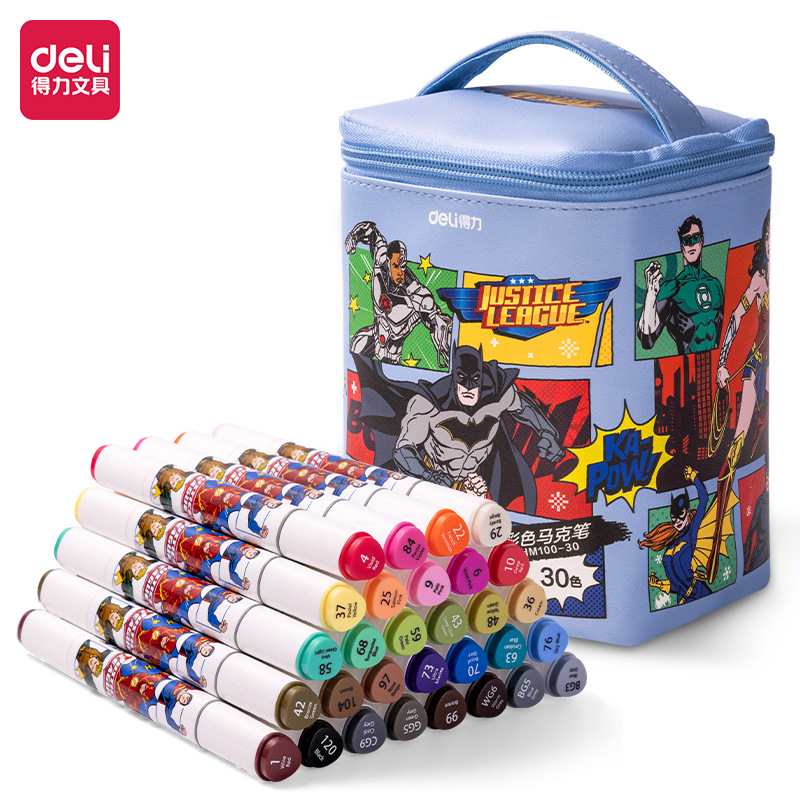 得力HM100-30/40/60/80马克笔正义联盟卡通学生绘画涂鸦水彩笔