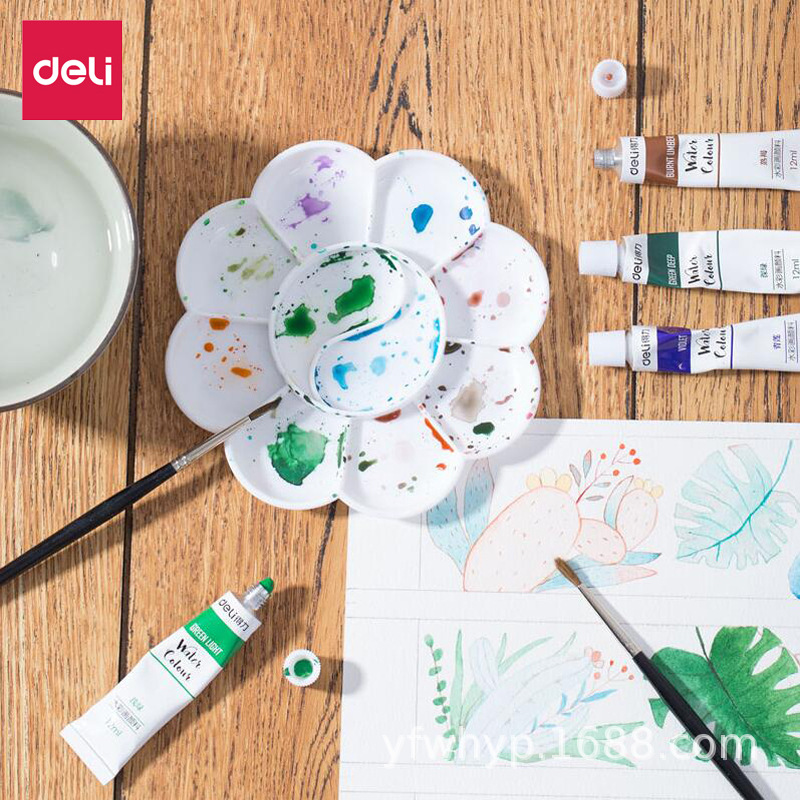 得力梅花调色盘9403调色碟颜料调色盒国画水彩水粉绘画大号调色盘