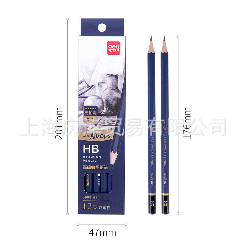 包装清单 得力S999-HB_高级绘图铅笔12支彩盒装HB(蓝)(12支/盒)