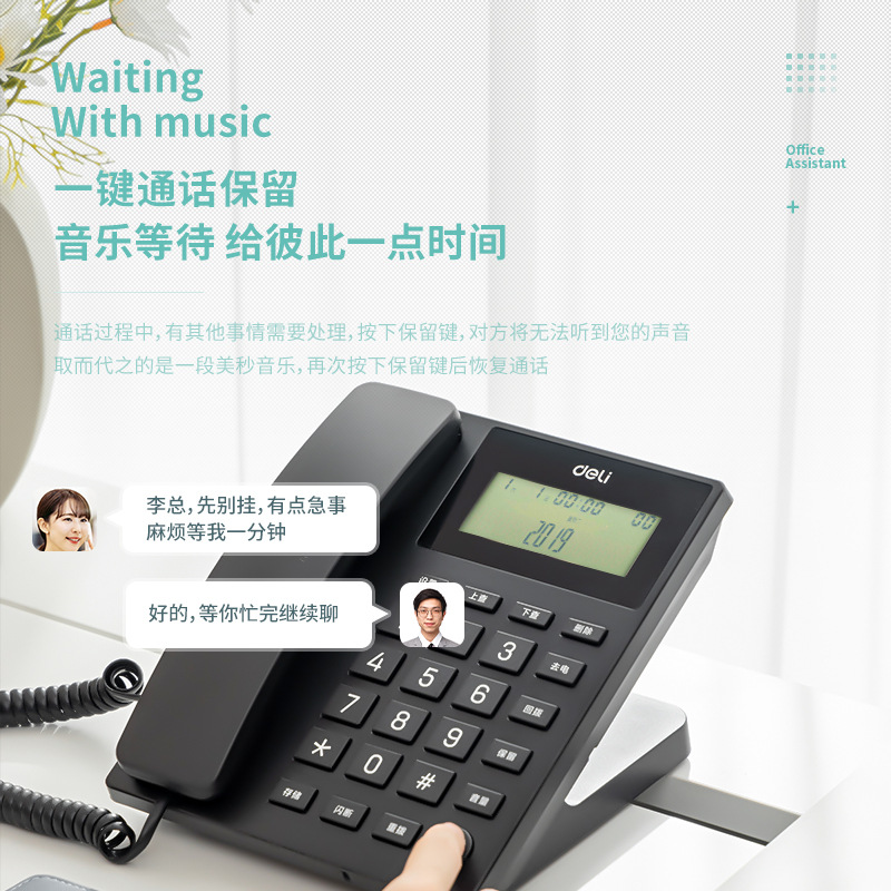 得力13560电话机桌面人机家庭办公有线座机免提语音播报来电显示