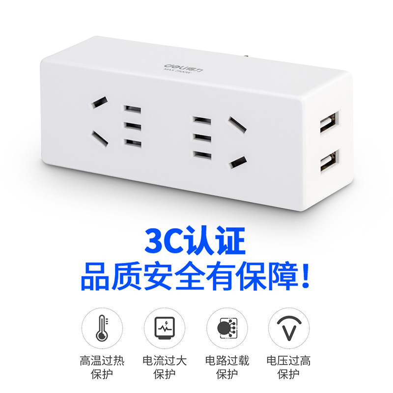 Deli 1 to 2 USB socket conversion plug socket converter 2-position wireless portable plug board 33661| Packing list | Deli 1 to 2 USB socket conversion plug socket converter 2-position wireless portable plug board 33661 |