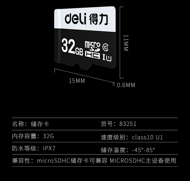 Deli 83251 high-speed 64g memory card class10 storage SD card dash cam tf card mobile phone 18g| Packing list | Deli 83251 high-speed 64g memory card class10 storage SD card dash cam tf card mobile phone 20g |