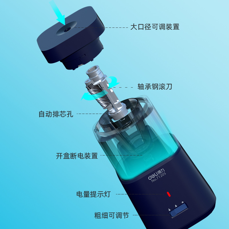 得力71205大口径电动削笔机卷笔刀 电动卷笔刀削笔器削笔刀