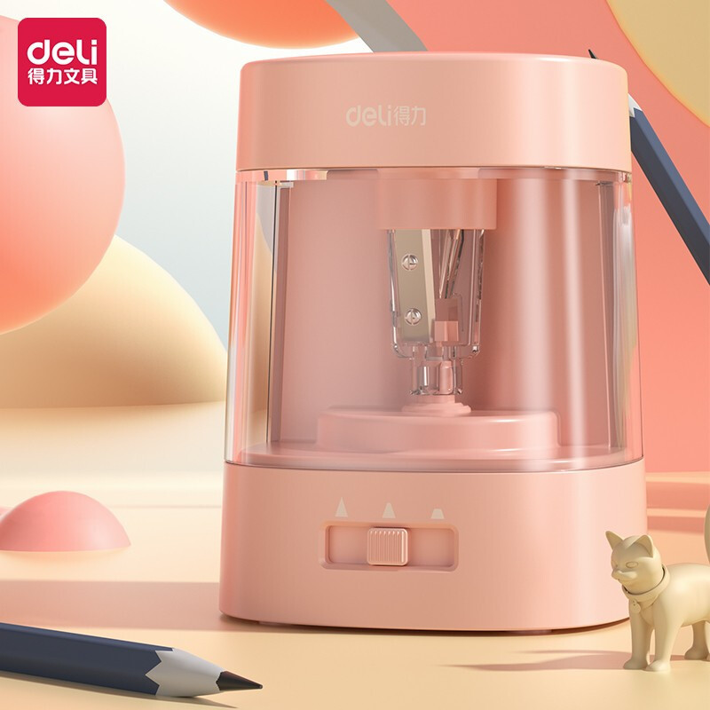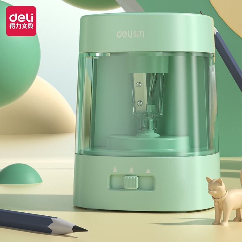 得力电动削笔机儿童全自动削笔器双电源粗细可调卷笔刀文具批发