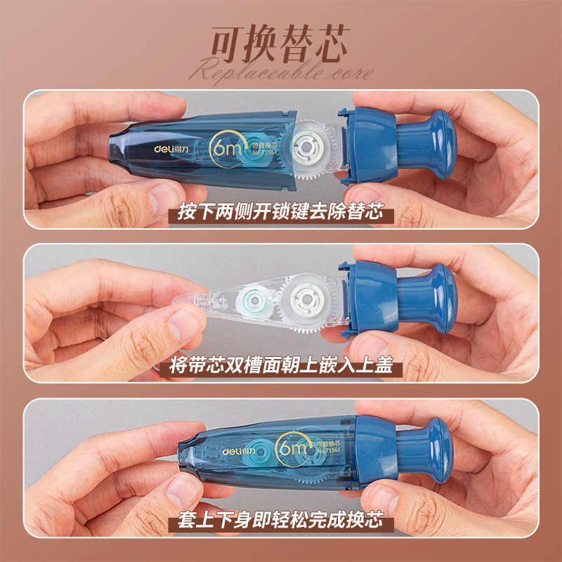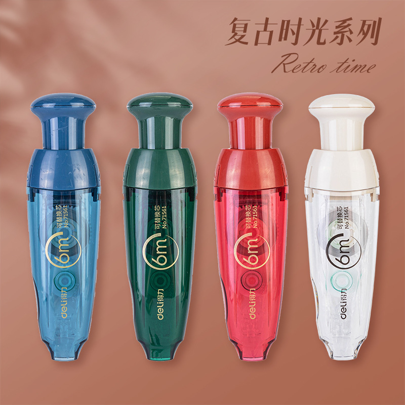 得力修正带按动可替芯改错带复古时光系列学生用无痕涂改带改正带