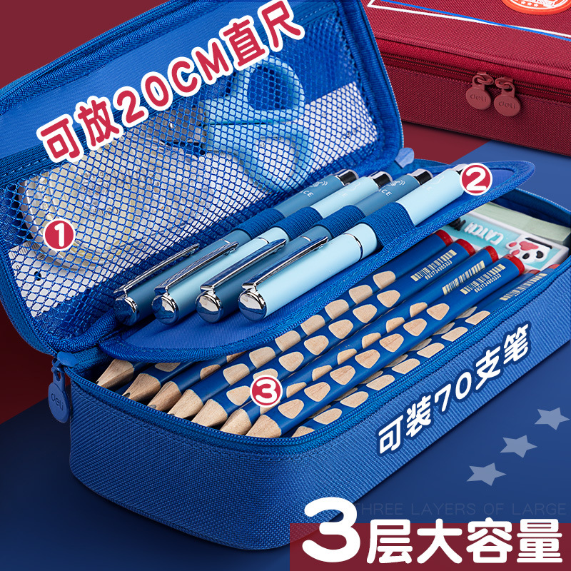 得力英伦风笔袋男孩子女孩小学生文具盒流行中学生文具袋大容量