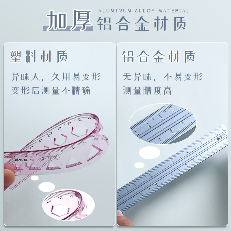 包装清单 得力79532金属套尺等腰三角尺直角三角尺直尺量角器绘图尺子4件套