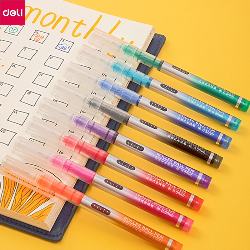 得力S853直液式走珠笔0.5mm彩色全针管中性笔学生办公签字练字笔