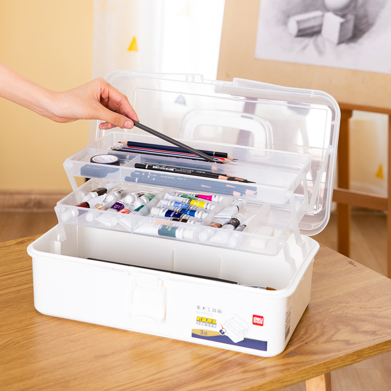 得力68302/68303大中号多功能便携学生美术工具箱收纳箱手提箱