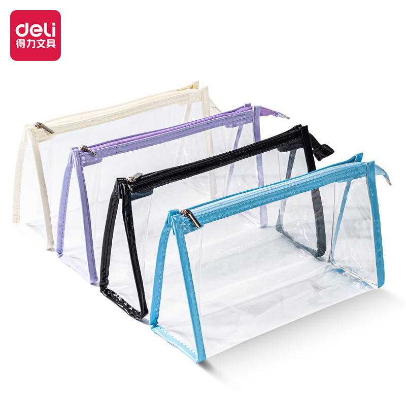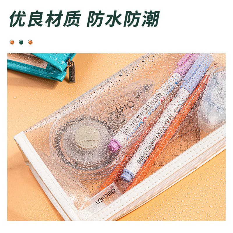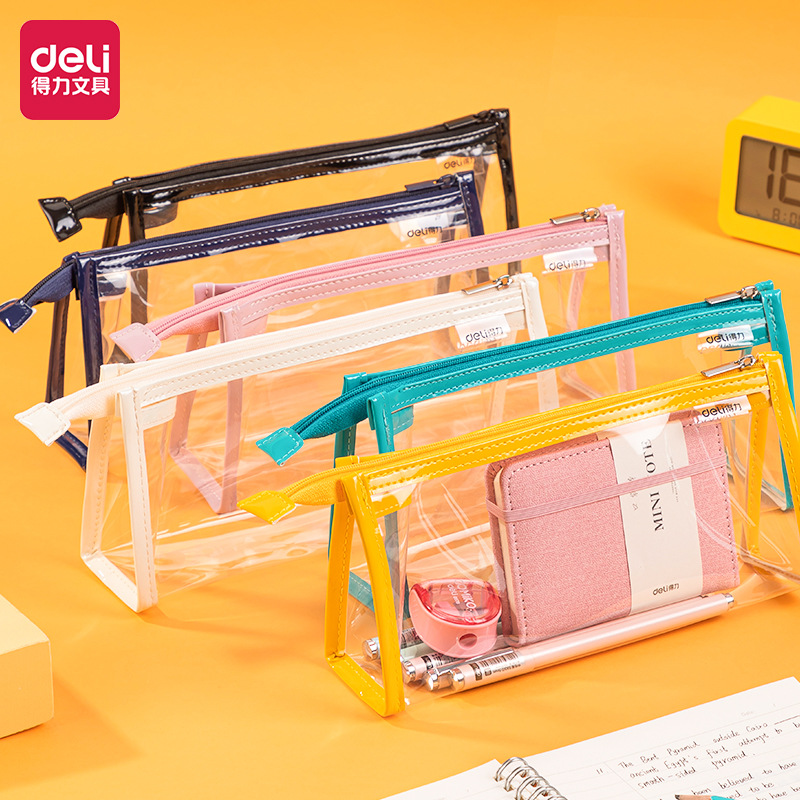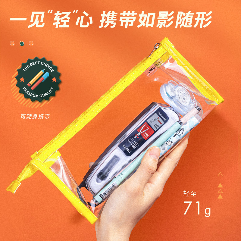 得力透明考试笔袋大容量小学生可爱简约防水中考高考学生文具收纳