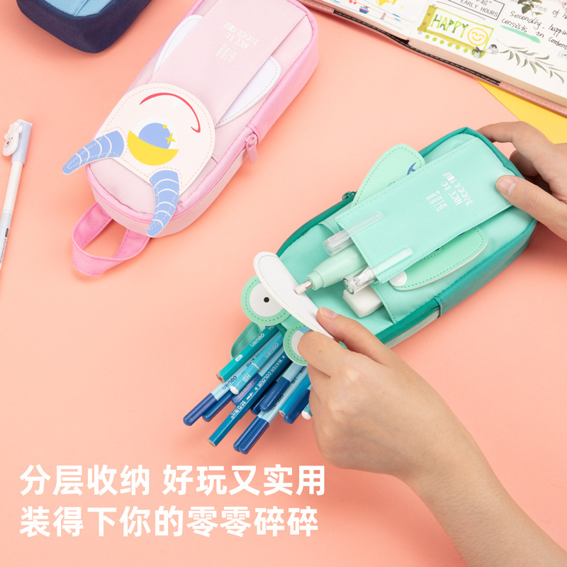 得力笔袋儿童学生文具盒竖款立式铅笔袋大容量可动笔袋3D立体笔袋