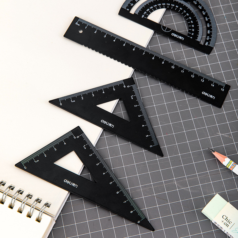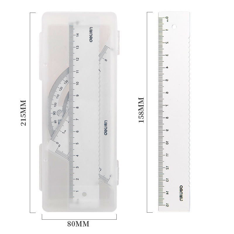 Deli Stationery 79510 Metal Sleeve Ruler Student's Straight Ruler Triangle Ruler Quadruple Set PP Box Portable| Packing list | Deli Stationery 79510 Metal Sleeve Ruler Student's Straight Ruler Triangle Ruler Quadruple Set PP Box Portable |
