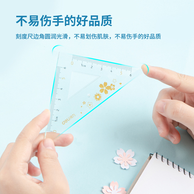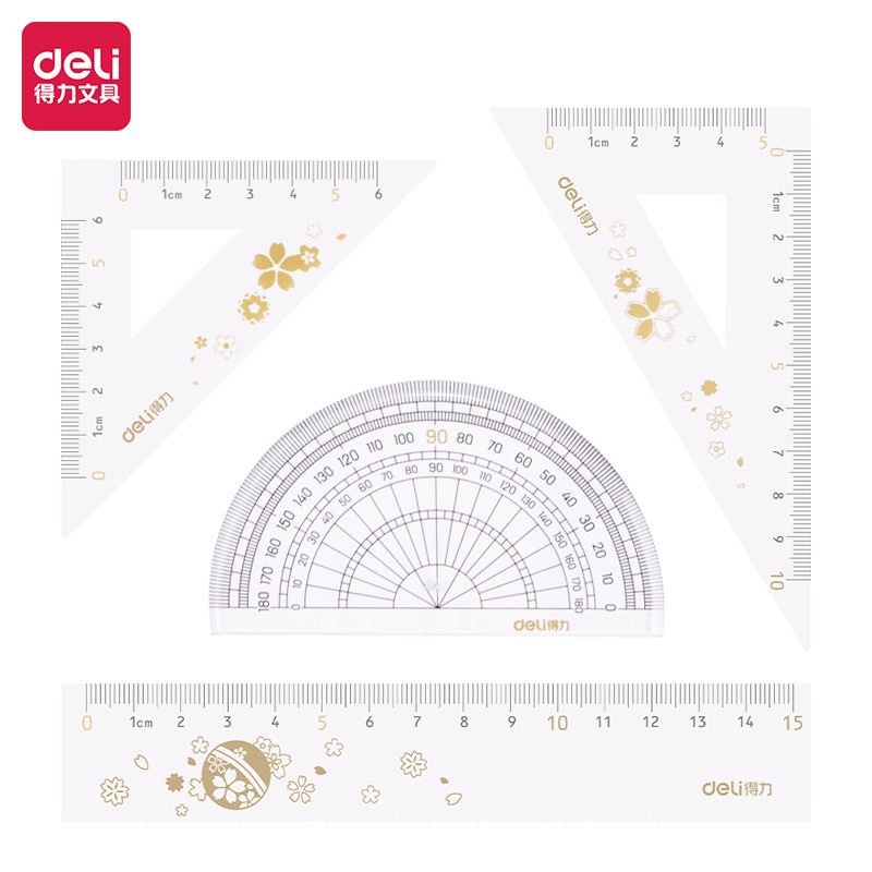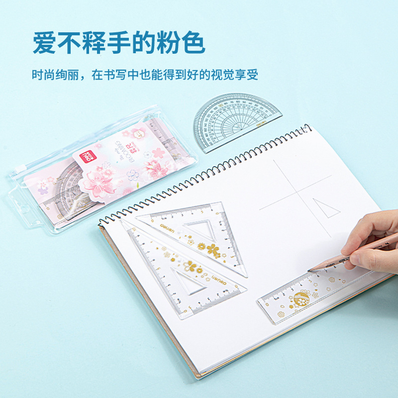 Deli 79540 Light Sakura 15cm Student Set Ruler Four Piece Set Ruler Triangle Angle Measuring Set Wholesale