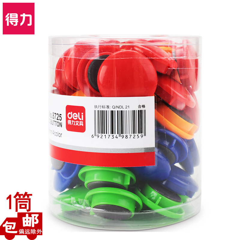得力8725筒装磁钉30mm大号吸铁石白板磁粒办公教学板彩色磁扣48粒| 包装清单 | 得力8725筒装磁钉30mm大号吸铁石白板磁粒办公教学板彩色磁扣48粒 |