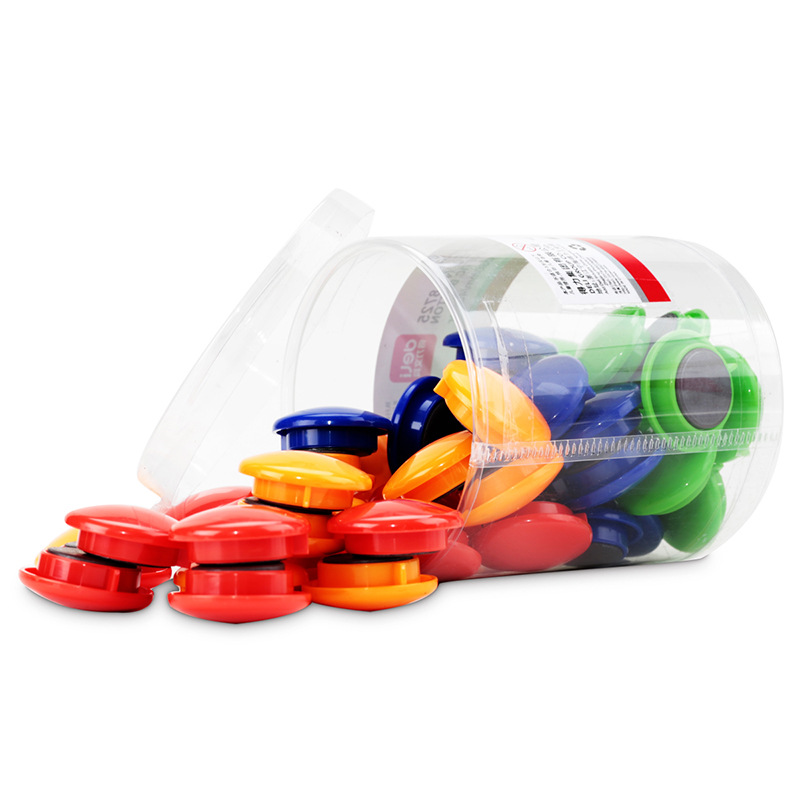 得力8725筒装磁钉30mm大号吸铁石白板磁粒办公教学板彩色磁扣48粒