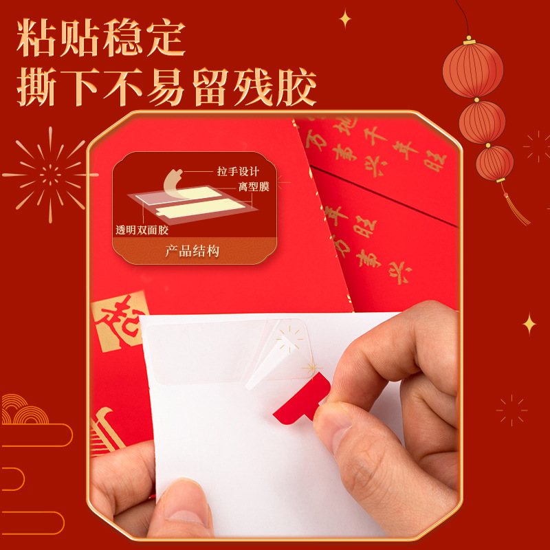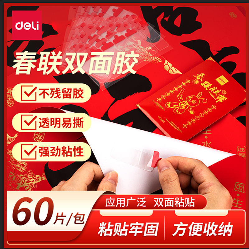得力无痕双面胶高粘度春联无痕胶贴对联专用胶贴不留痕对联双面胶