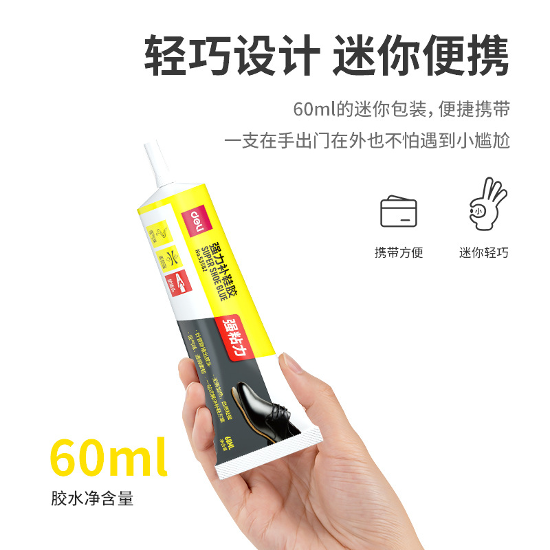 包装清单 得力53582强力补鞋胶快速粘贴液体胶水瞬间胶可粘鞋类皮具箱包