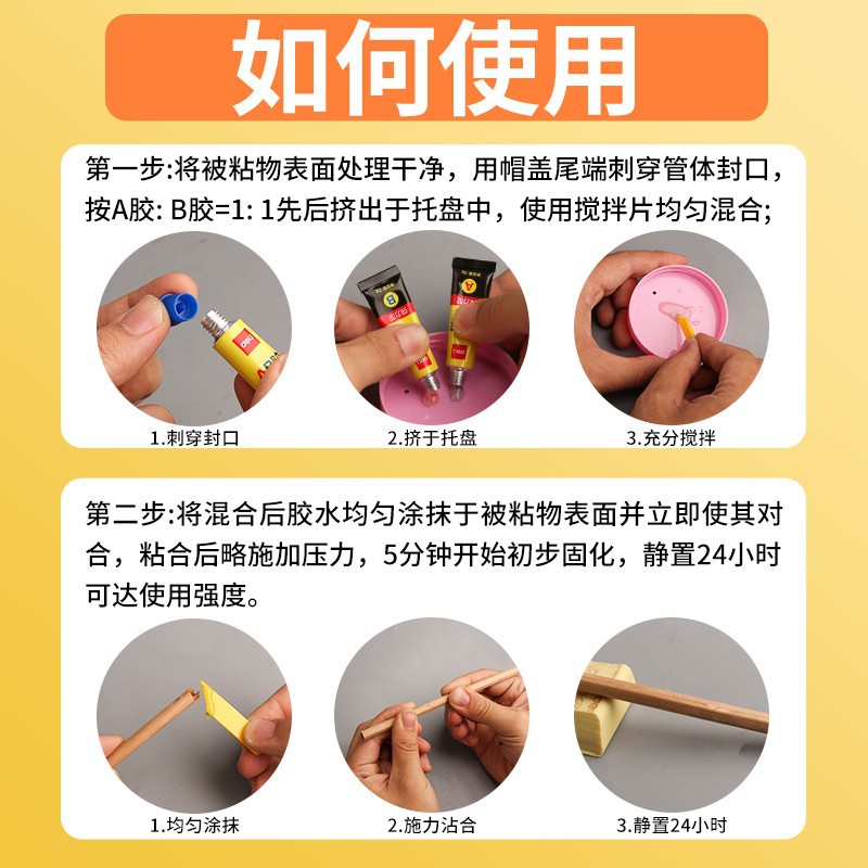 包装清单 得力ab胶批发强力胶环氧树脂diy手工ab胶水快干粘金属陶瓷木头