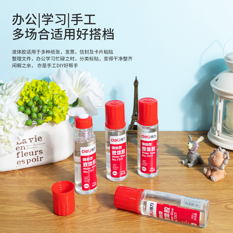 得力7317液体胶透明液体胶水大号学生手工diy粘贴胶100ml海绵头