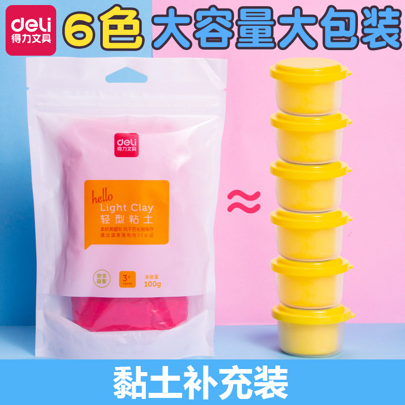 得力太空泥橡皮泥超轻粘土装大块袋装单色大号包装67841