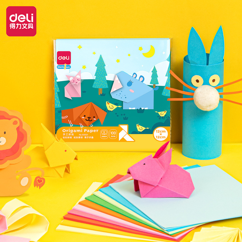 得力83631/32/33/34儿童10色100张彩色手工折纸幼儿园小学生折纸