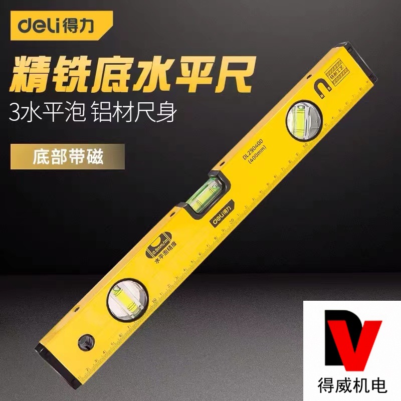 Deli precision milled bottom level ruler, magnetic cast aluminum decoration balance ruler, high-precision flat water ruler, guiding ruler DL291001