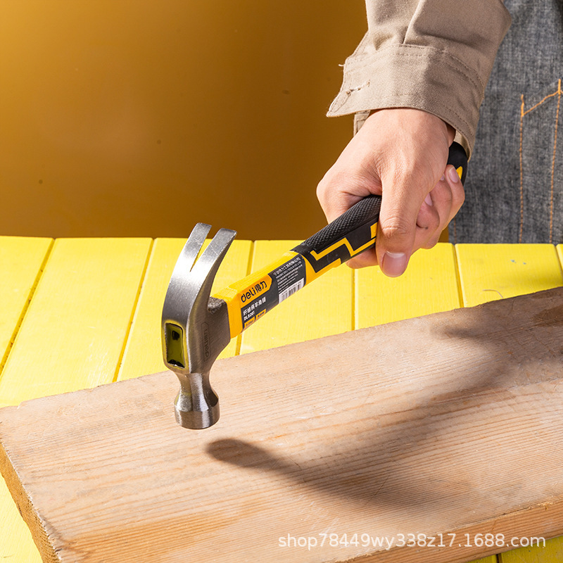Deli Sheep Horn Hammer Wholesale Construction Site Fiber Handle Carbon Steel Multifunctional Hammer Woodworking Dual Use Adhesive Wrapped Nail Hammer