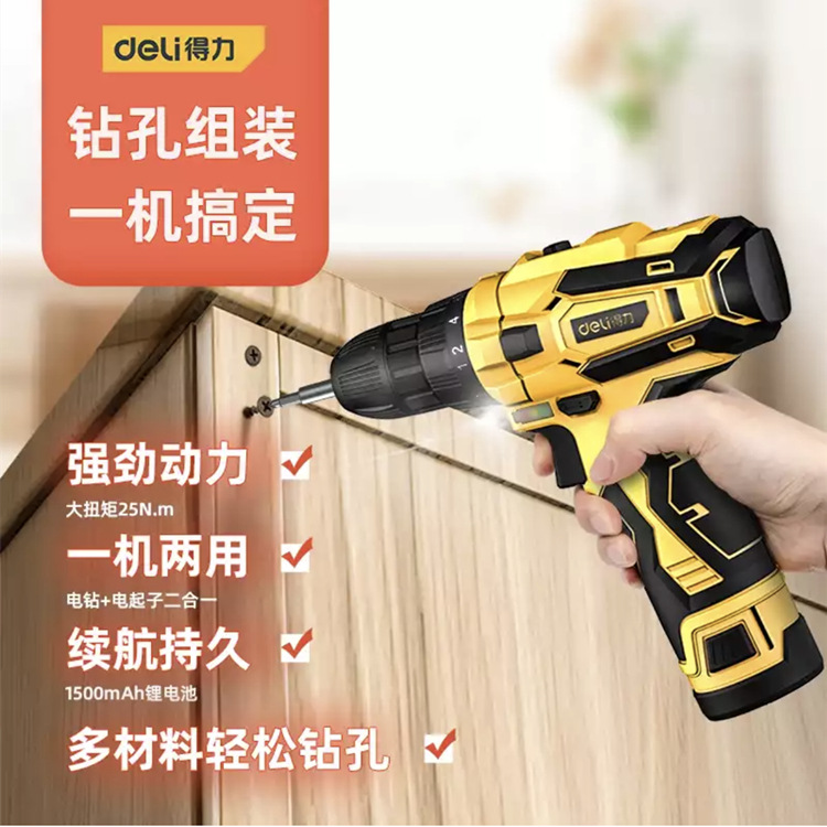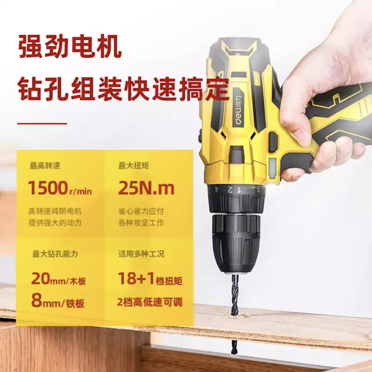 Deli rechargeable screwdriver, lithium electric hand drill, household 20V wireless five level variable speed decoration, furniture decoration wholesale