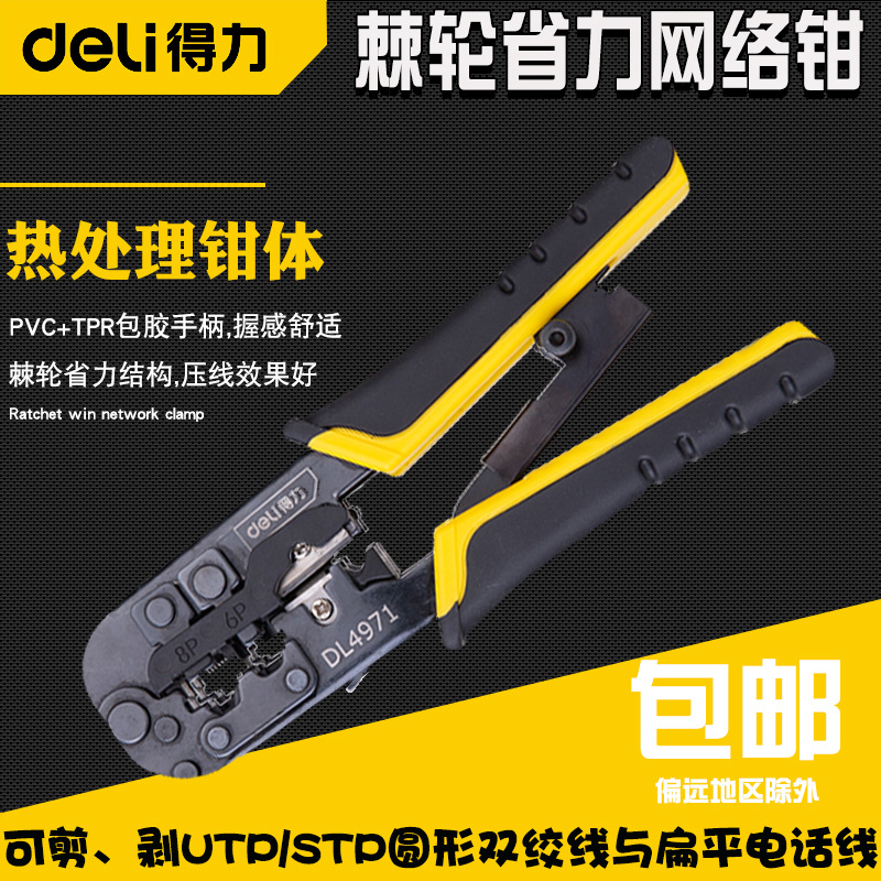 得力网线钳水晶头压线钳子家用多功能网络钳接头工具DL4971网线钳