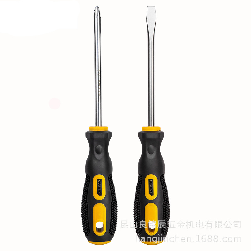 Deli Tool Rubber Plastic Screwdriver 2-piece Set Cross Slotted Magnetic Household Screwdriver DL260002B