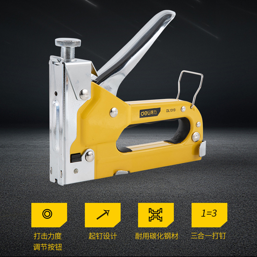 得力DL1316手钉枪装潢工具型钉枪三用U型T型门型钉三合一打钉枪