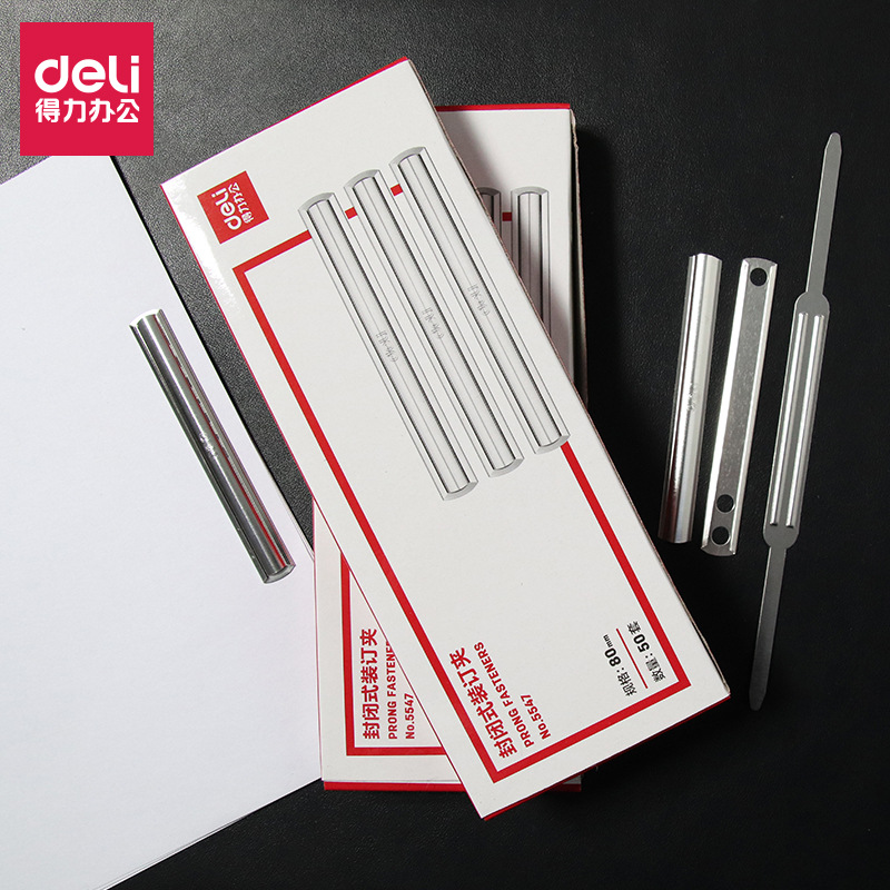 Deli 5547 closed binding clamp strip, two hole punching machine, cover binding buckle, 80mm metal clamp strip, 50 pairs