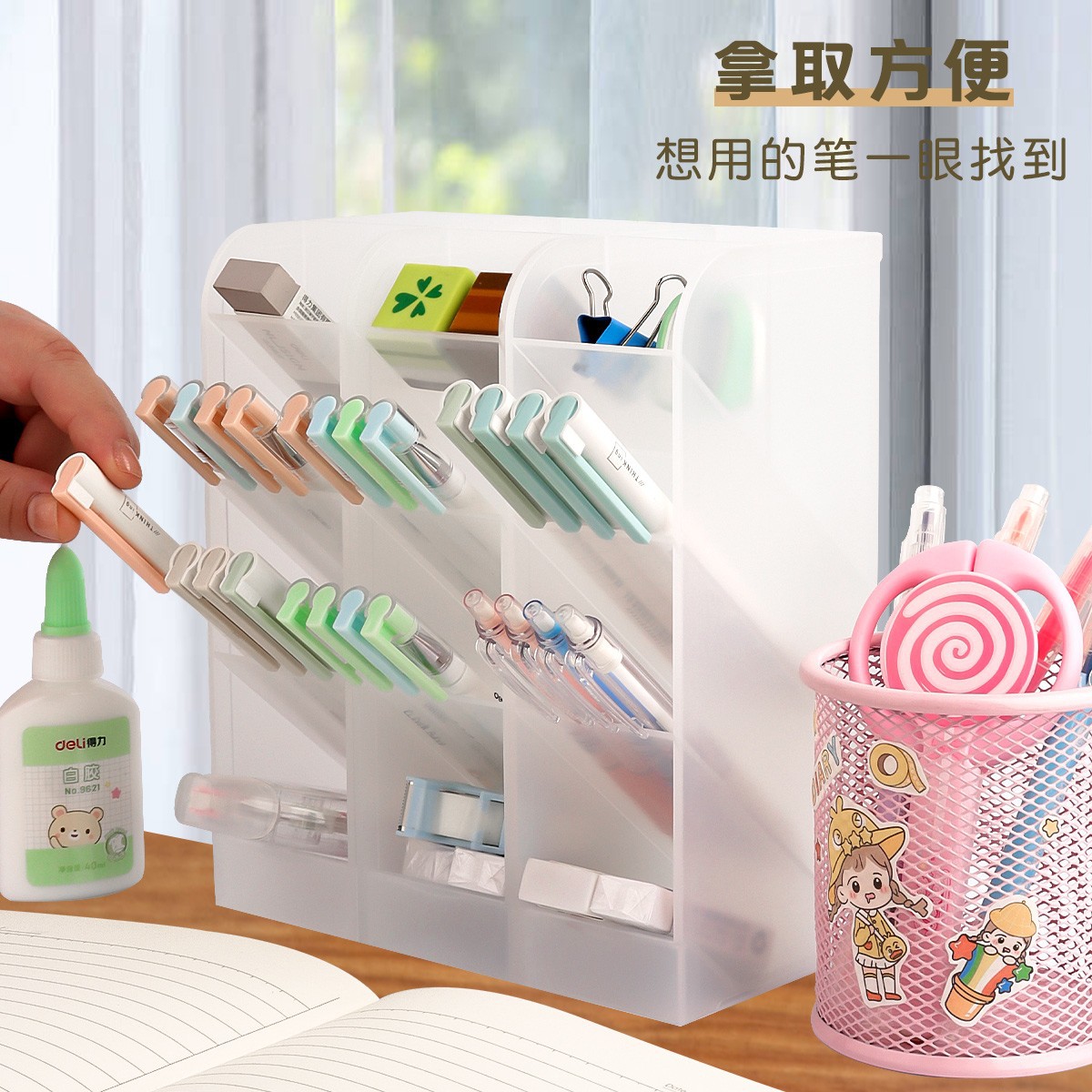 Deli Oblique Insert Pen Holder with Large Capacity INS Nordic Personalized Simple and Transparent Storage Pen Holder Student Desktop Creativity