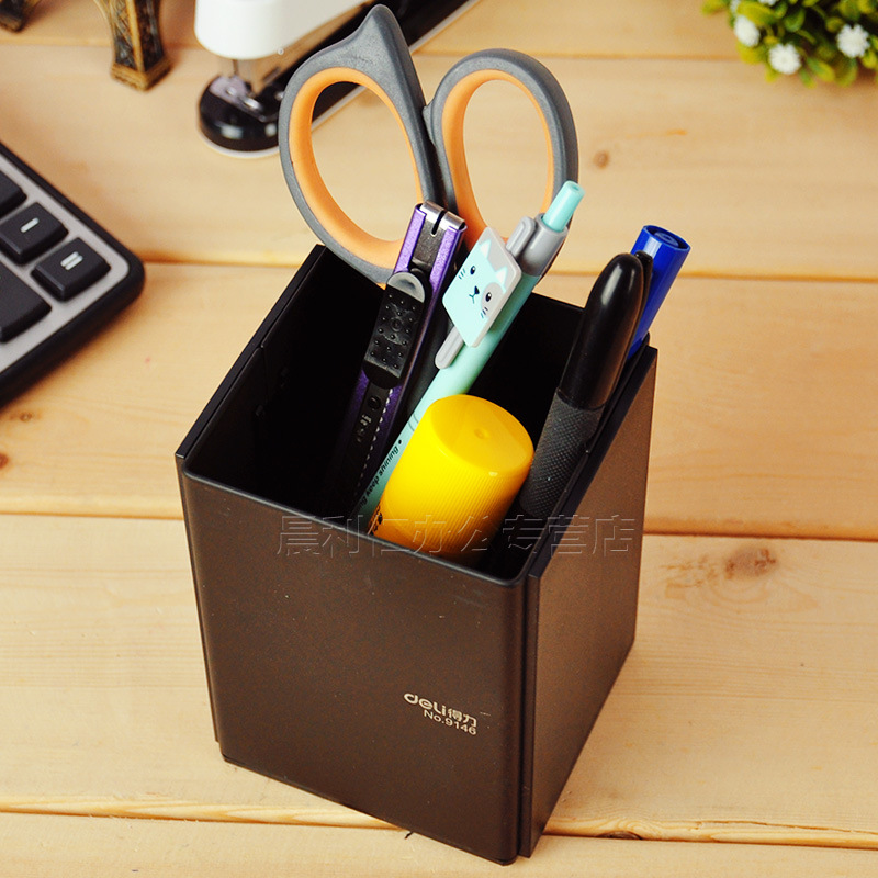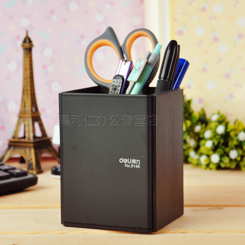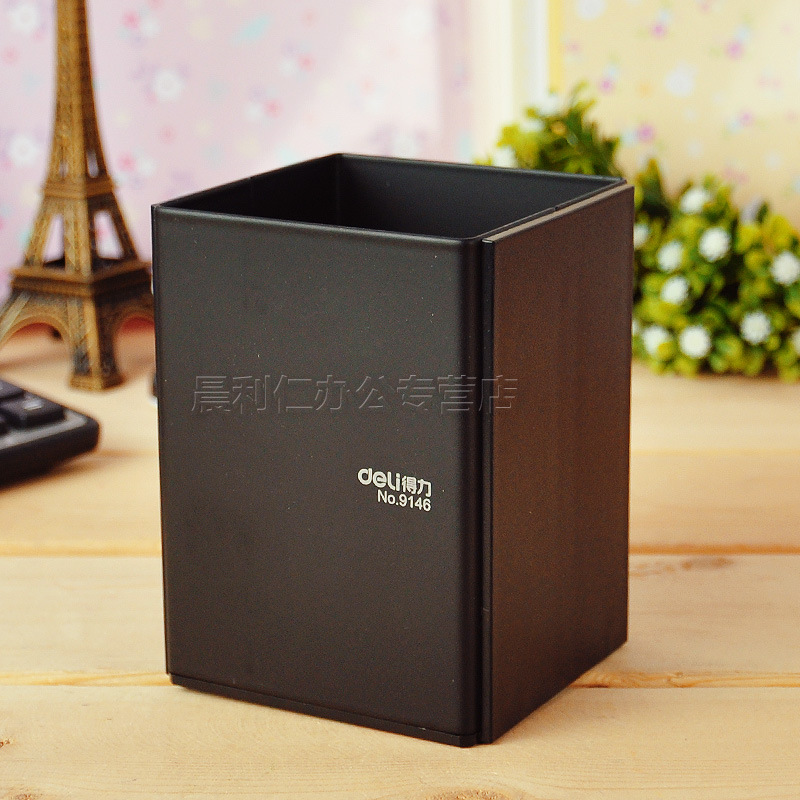 Deli/得力9146笔筒 钢质笔筒 黑色笔筒精钢笔筒旗舰型可印LOGO
