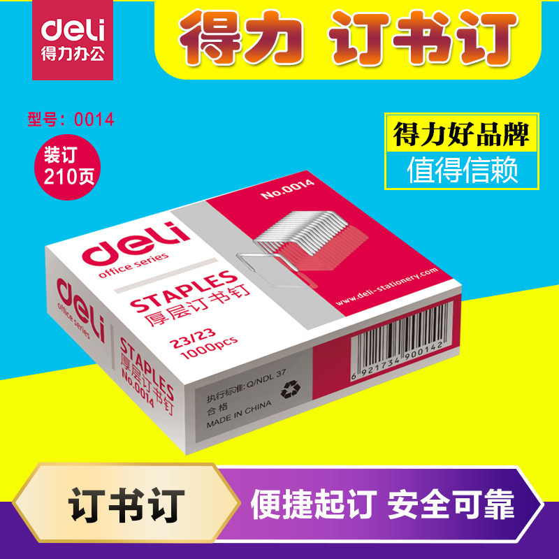 得力0014厚层重型订书针23/23加厚大号订书钉装钉书针可钉210页钉| 包装清单 | 得力0014厚层重型订书针23/23加厚大号订书钉装钉书针可钉210页钉 |
