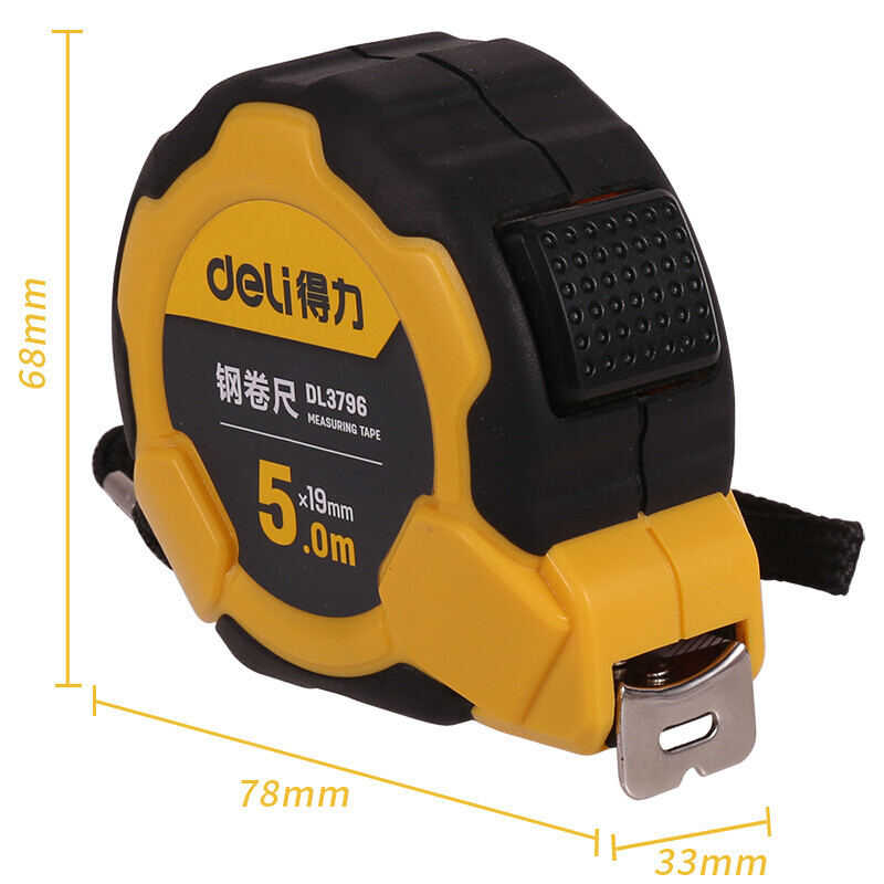 包装清单 得力(deli) DL3796 5米包胶自锁钢卷尺盒尺伸缩尺米尺公制5mx19mm