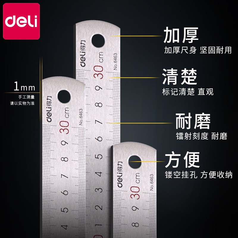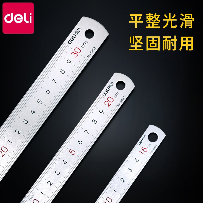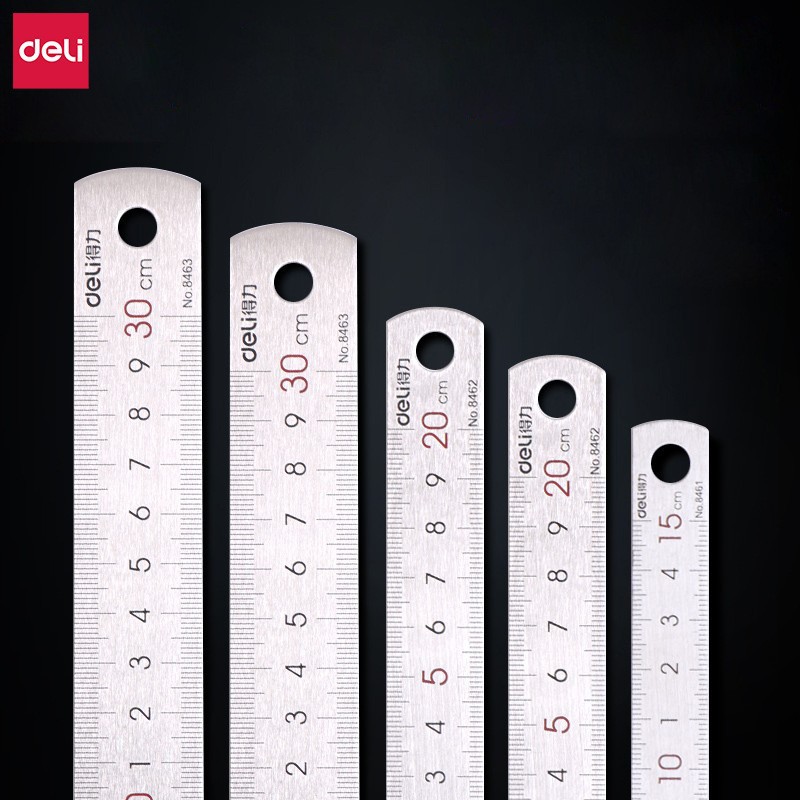 Deli Stainless Steel Ruler 15cm Primary School Metal Ruler 20cm Stationery Large 30cm Steel Ruler Measurement Wholesale